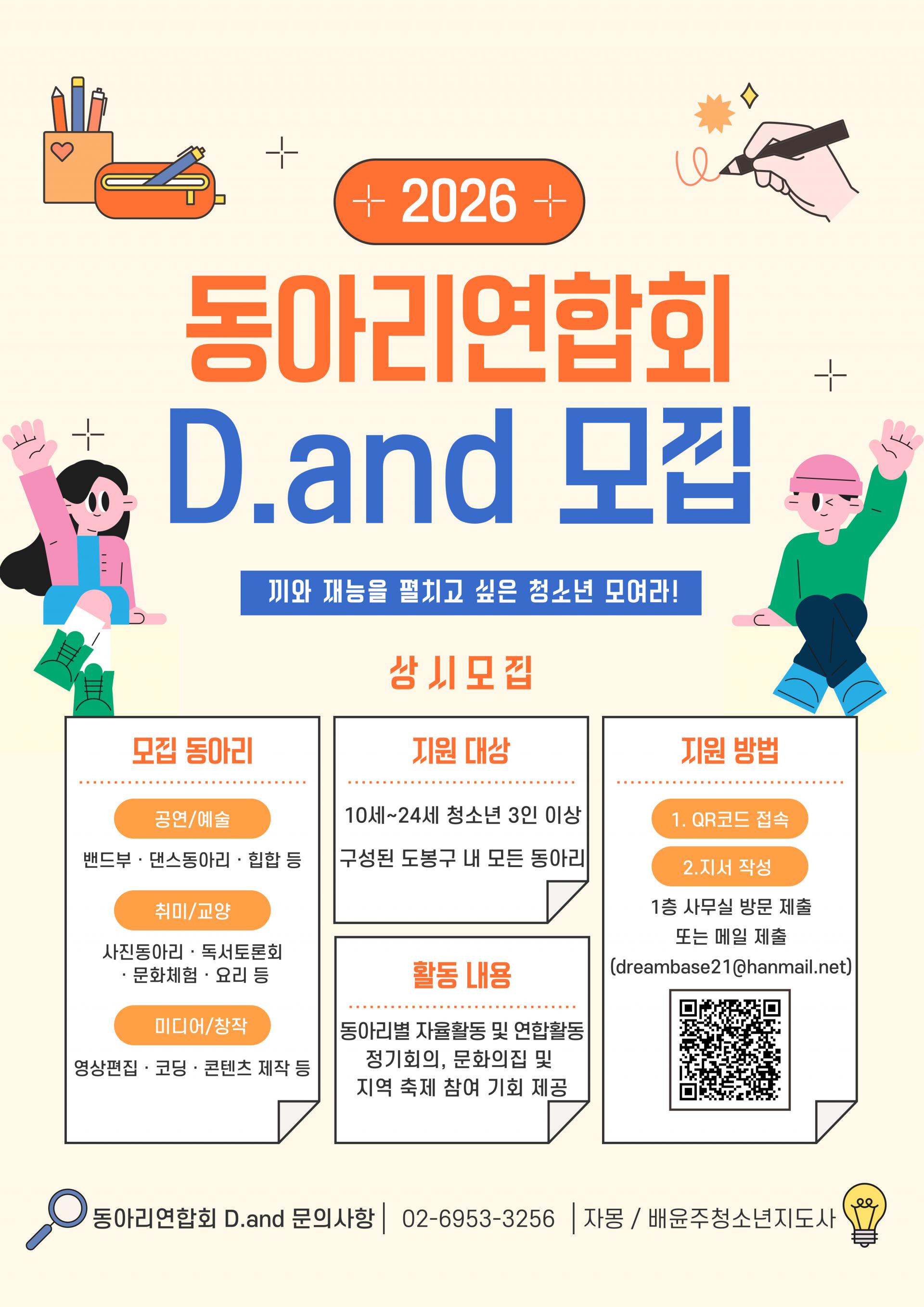 도봉동청소년문화의집 동아리 연합회 신규 청소년 모집 중!