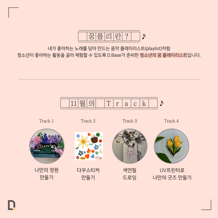 - B반: 11/25(금) 16:00~18:00 / 도봉구 거주 10~19세 청소년 8명