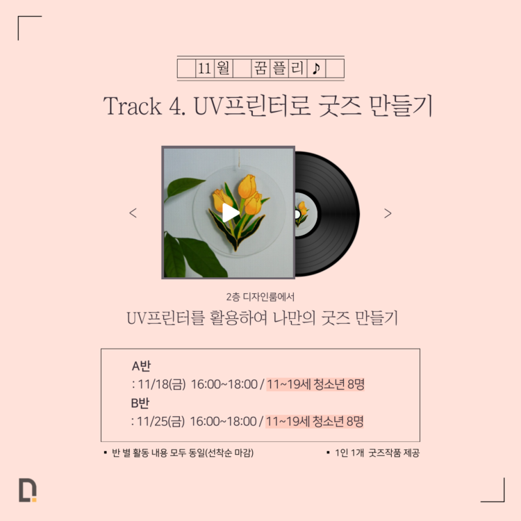 - A반: 11/18(금) 16:00~18:00 / 도봉구 거주 10~19세 청소년 8명
