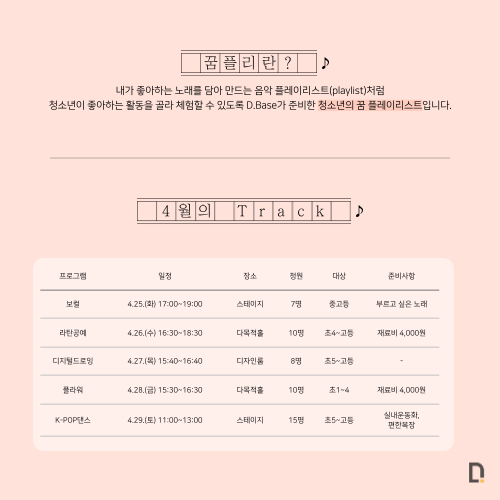 - 장소 : D.Base 4층 다목적홀