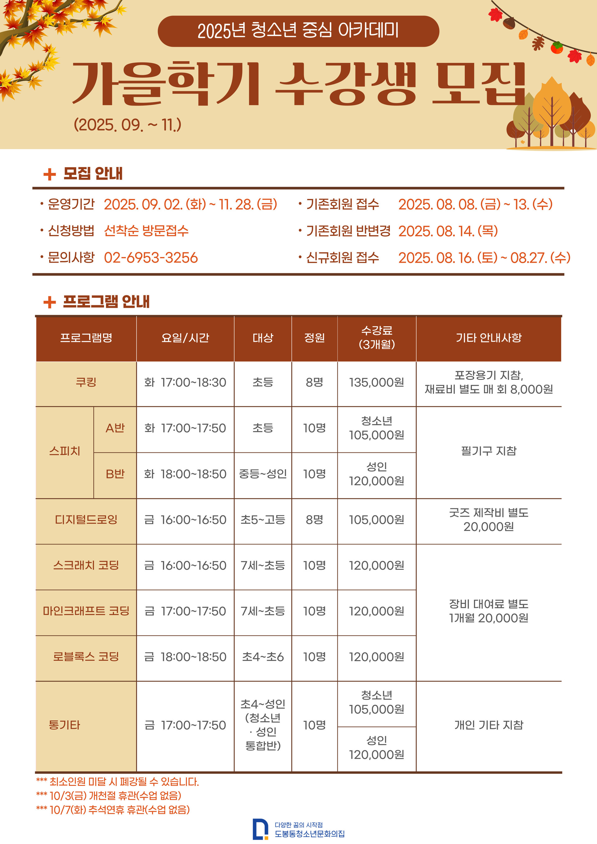🌳2025년 청소년 중심 가을학기 아카데미 🍂